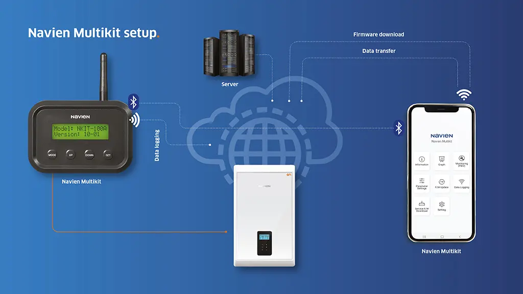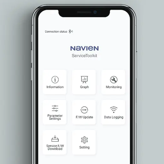 Navien’s Multikit allows for accurate boiler monitoring and diagnosis based on live data. Use it to check product information, error logs and service history, as well as customise settings according to a user’s needs and the property type.