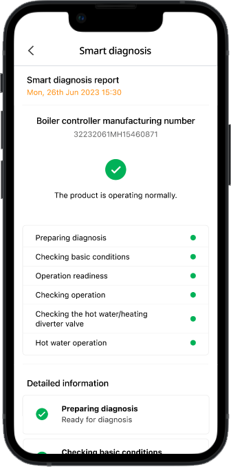 Smart Diagnosis allows you to check your boiler’s overall operational health at the touch of a button.